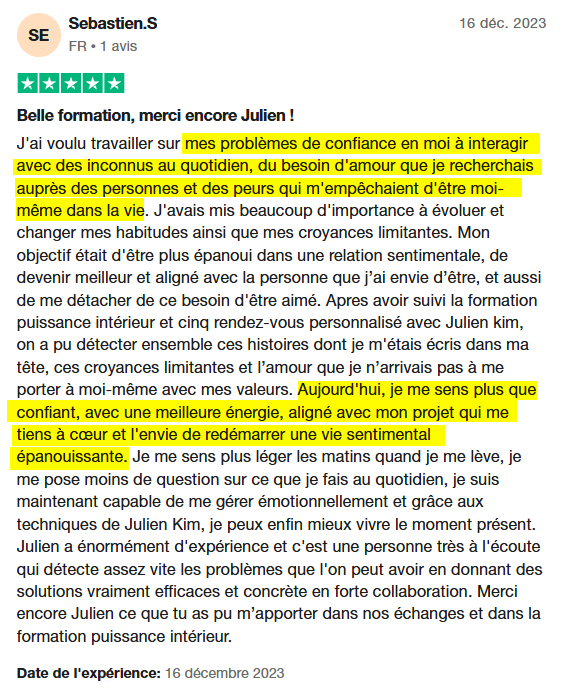 "Aujourd'hui, je me sens plus que confiant, avec une meilleure énergie, aligné avec mon projet qui me tient à cœur"